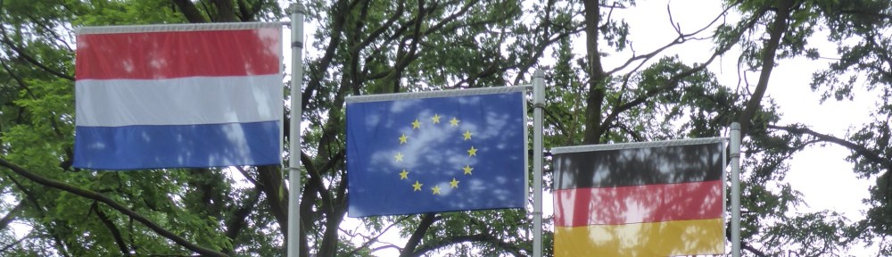 A varied day’s cycling to take us across the border: main road to the Maas and then, after the ferry crossing, a green route beside the river and through woods on an old railway line (the Boxteler line) into Germany. Then a main road again for coffee in Goch – which seemed much less middle-class than towns in the Netherlands somehow. Main road again (good for covering the miles) and the Boxteler Bahn and green roads to Xanten.
