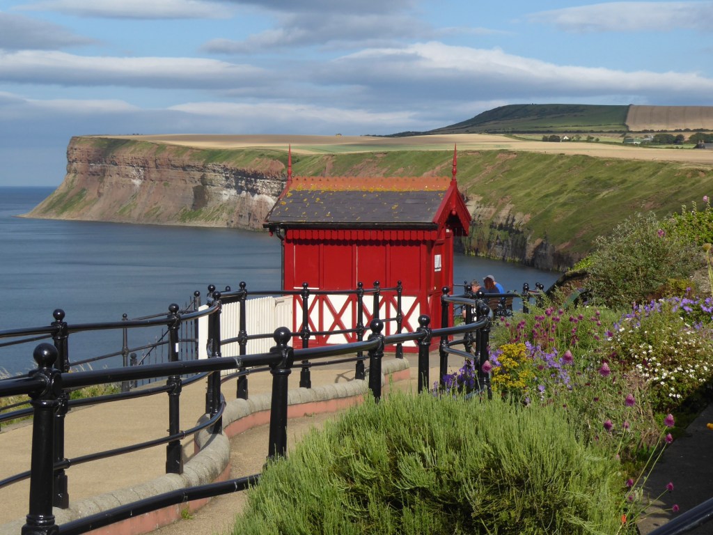 I have been doing a little homework for tomorrow’s “guided tour” for someone who’s never visited before. Clifftop tram, obvs – water-powered funicular, sadly not working at present. Precious stone/jewel street names (Amber, Coral, Emerald, etc) on a grid pattern. Like Arnside and Grange-over-Sands, transformed from a backwater into a Victorian holiday resort by the arrival of the railway. Built and promoted by the Pease family of Darlington – Quakers with a finger in every pie. (Originally there was no alcohol.) Built on land bought from the Earl of Zetland. I was told by someone I got talking to in a café that the railway line used to continue beyond the station right up to the Zetland Hotel on the edge – a proper railway hotel. A wave in the direction of the beckside gardens, a mention of Convalescent Street . . . and I am ready for my Blue Badge.