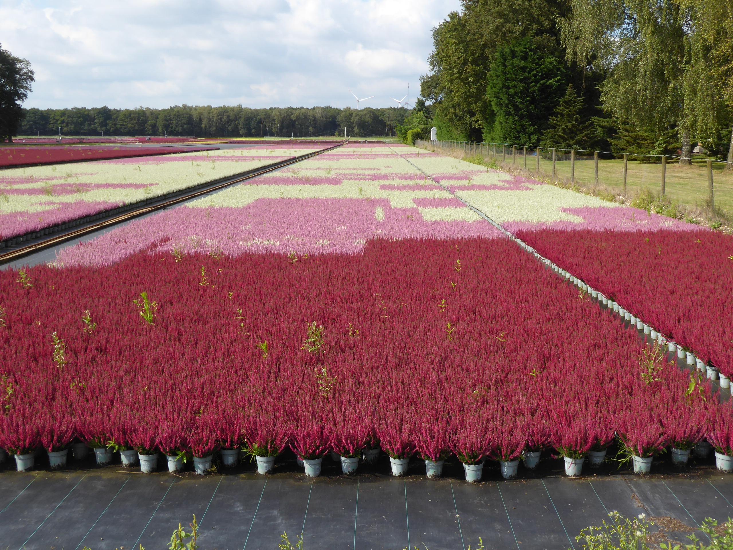 From Germany to the Netherlands and back again. We cycled past more of the Nettetal ponds, then an old wartime airfield on the border before joining the Maas at Venlo – a place I associate with changing trains. We cycled north beside the river to Arcen and through the Maasduinen – a sandy ridge between the two countries – back into Germany. Here I stopped to photograph a heather nursery, which was quite striking.