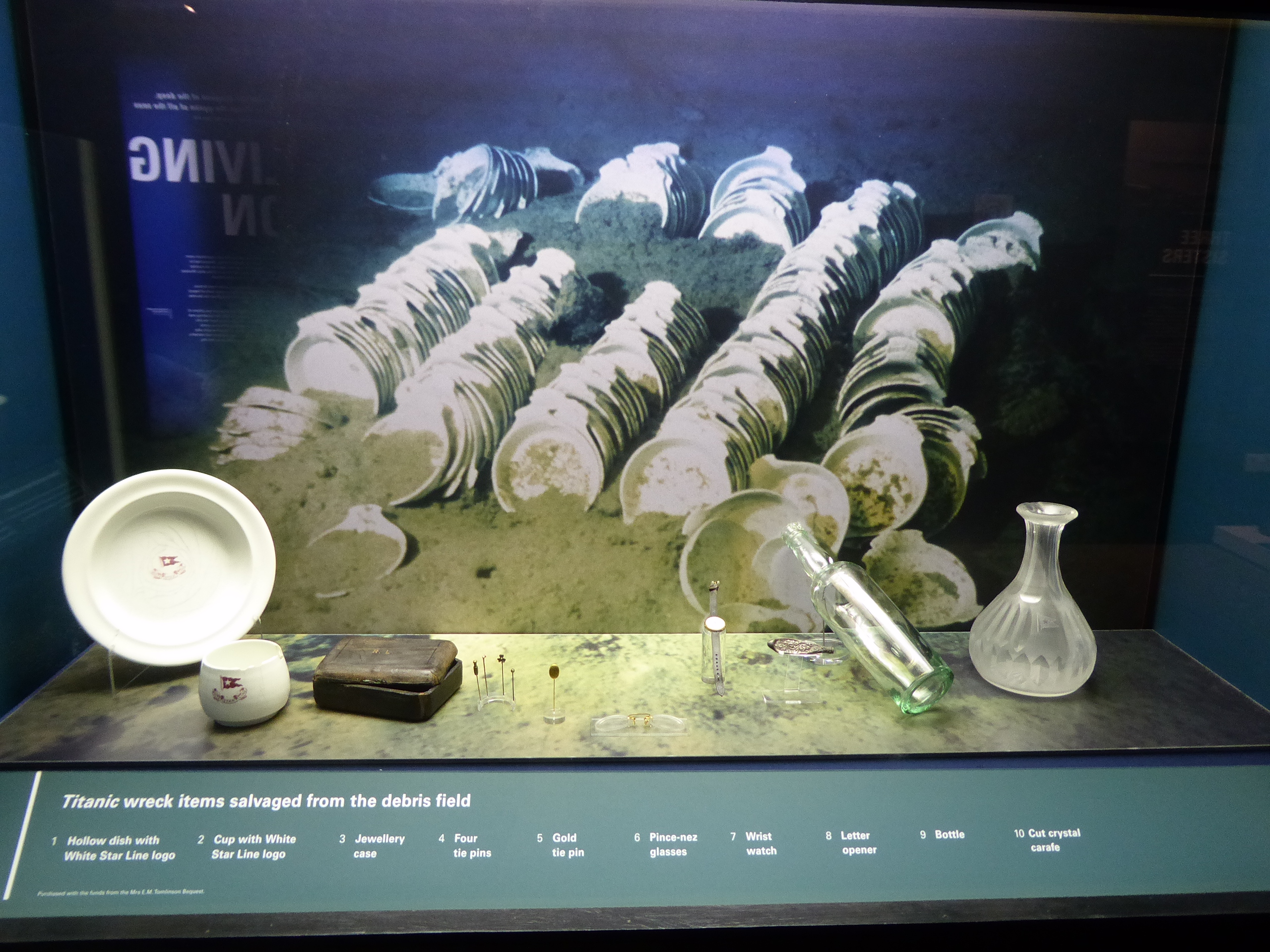To the Maritime Museum, where I found myself unexpectedly interested by the history of Liverpool’s docks. More expectedly, I was very taken by the glamour of interwar ocean liners. The Titanic exhibition I largely swerved because of school groups, but the photograph of a rack of plates, still on the sea bed and half-covered by sand, was surprisingly moving. A modern Vanitas.
