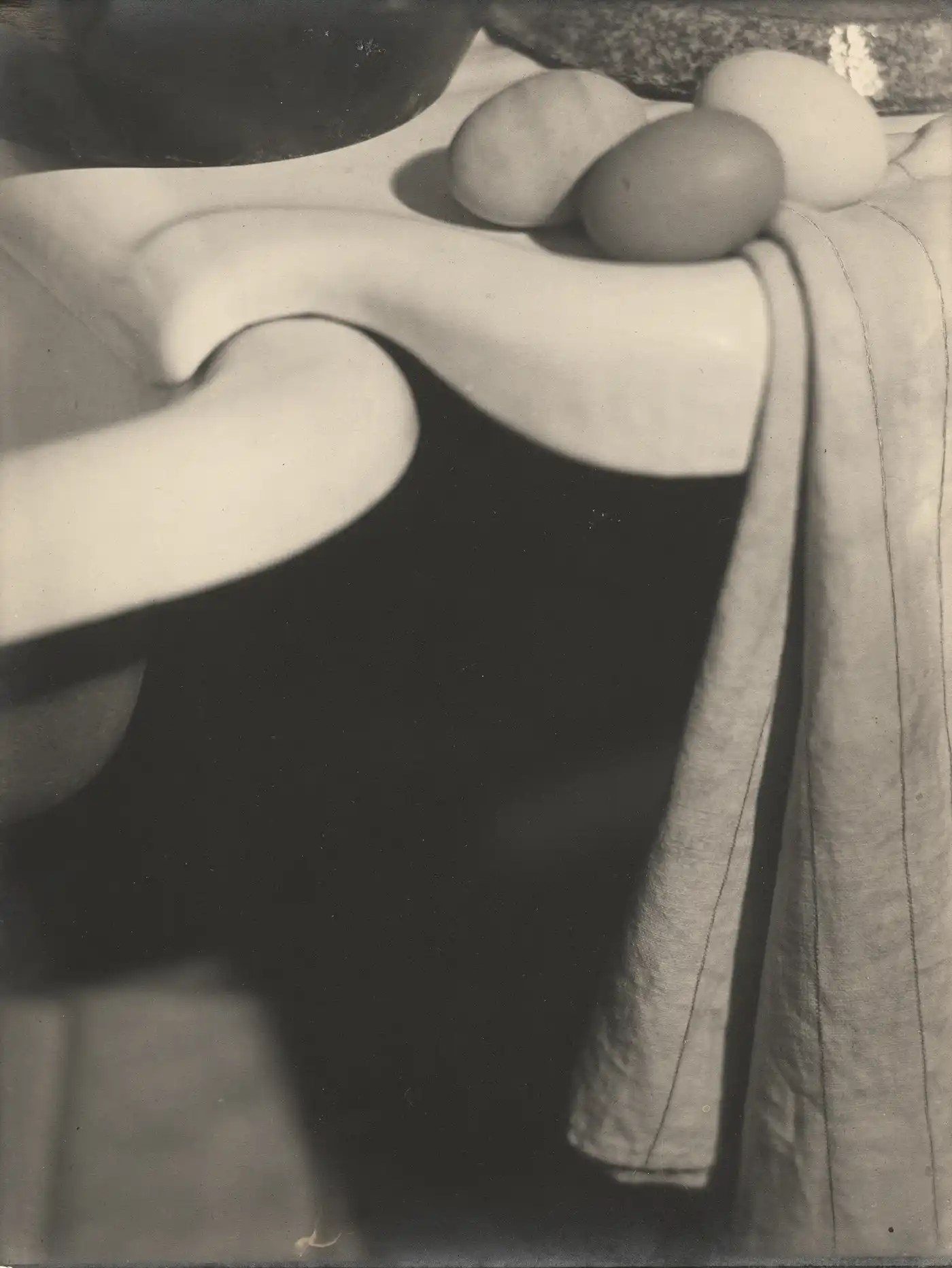 A few weeks ago I read about Margaret Watkins (1884-1969), a Canadian photographer who lived, worked and taught for several years in New York before travelling to Glasgow and getting stuck on the flypaper of domesticity. In New York she found success in advertising and in offering a new kind of abstract “kitchen sink” composition. The three eggs was the photograph that gripped me: the curves, the dark space – just wonderful. Strong geometry and sometimes a painterly style. (The dainty tea cup photograph is advertising cuticle cream.)