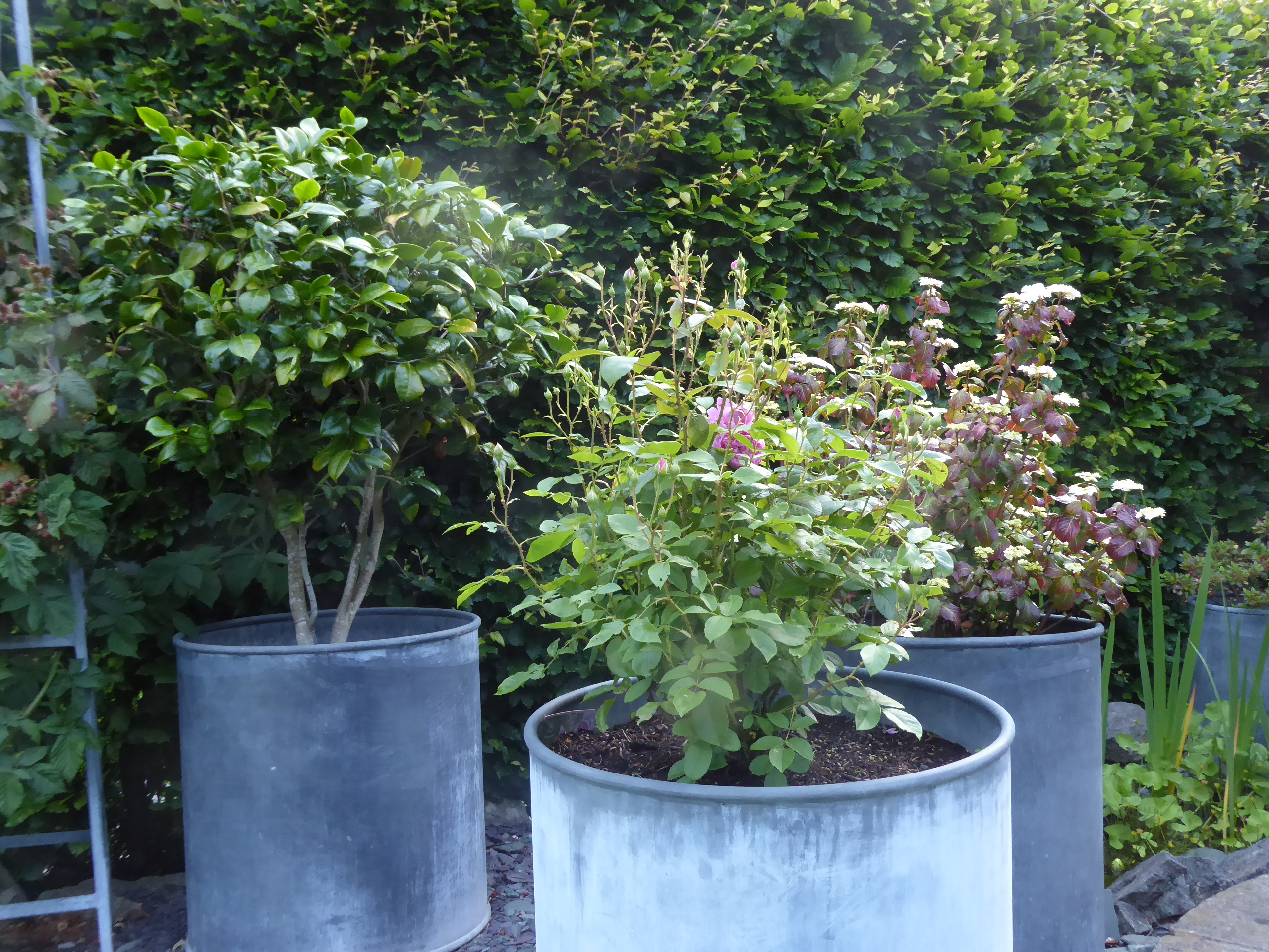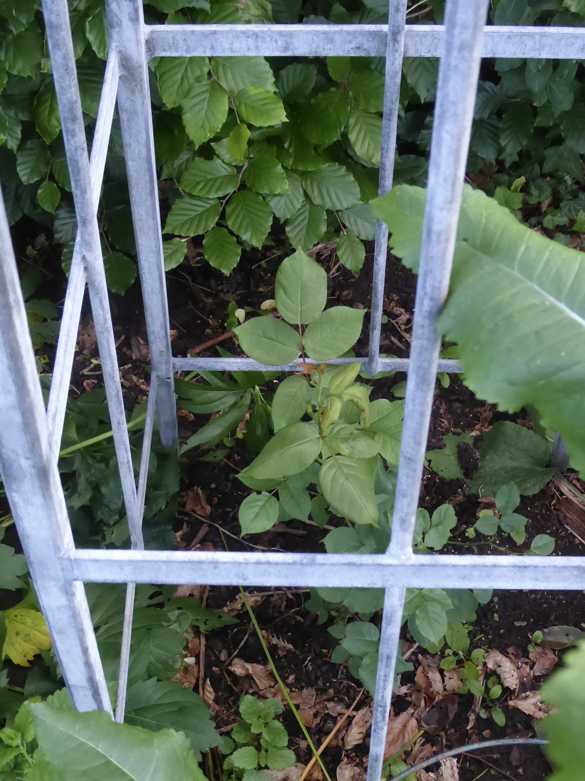 I just hope the new climbing rose will forgive me for inadvertently imprisoning it behind an enormous teazle.