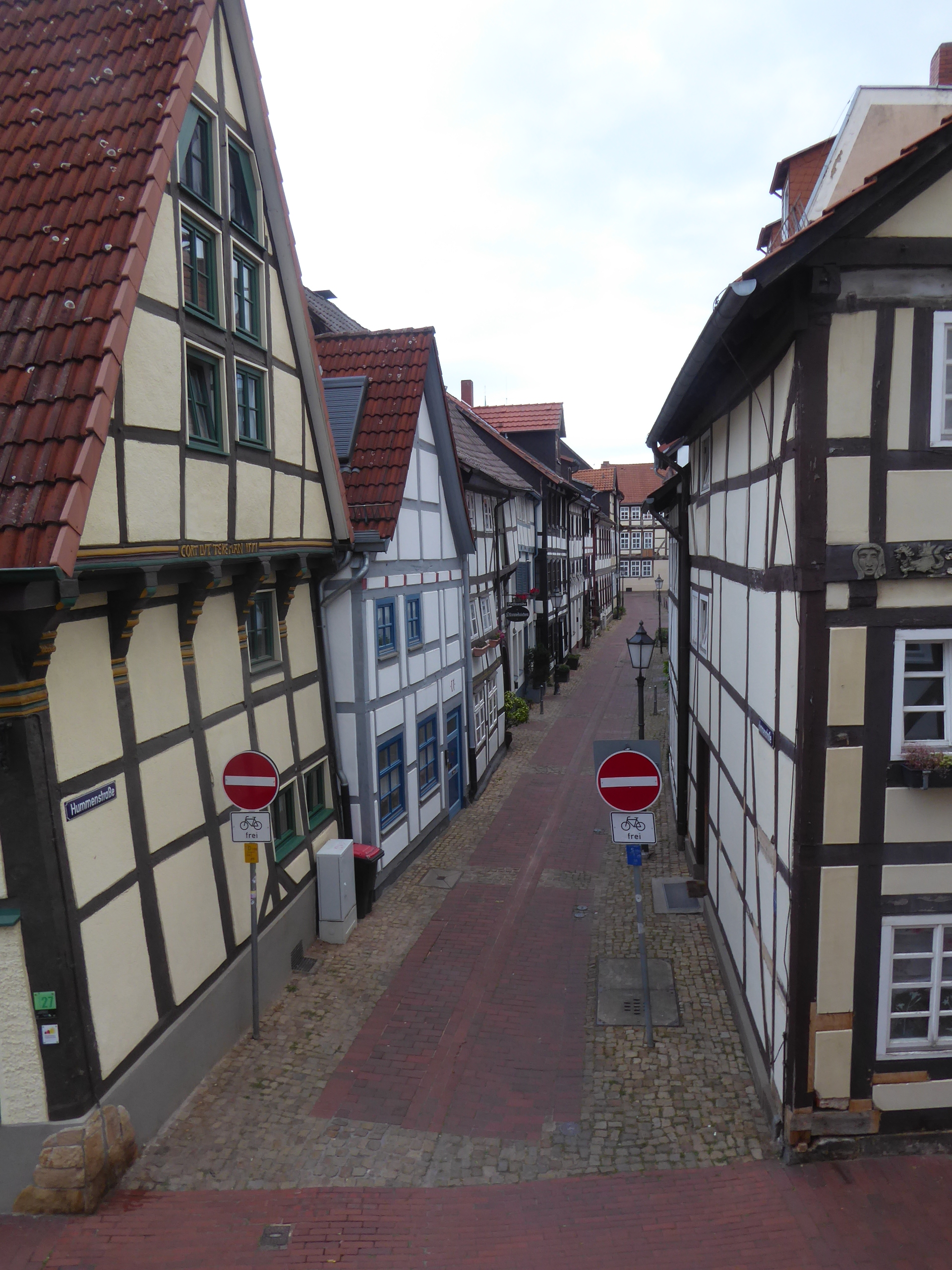 Even by our new-normal standards, this was a short day. The weather forecast was for a strong headwind and very strong gusts, so the idea of reaching Münster in one day was shelved. It was a pleasant ride nonetheless so long as you didn’t get hit by flying acorns, with – in deference to the distance – just the one cake for me today. At Warendorf we picked up the 100 Schlösser Route once again, and the Markt was a familiar sight from our previous visit. I had time to wander around the town – very well-kept and quiet, with cars kept out of the centre (and hence lots of bicycles).