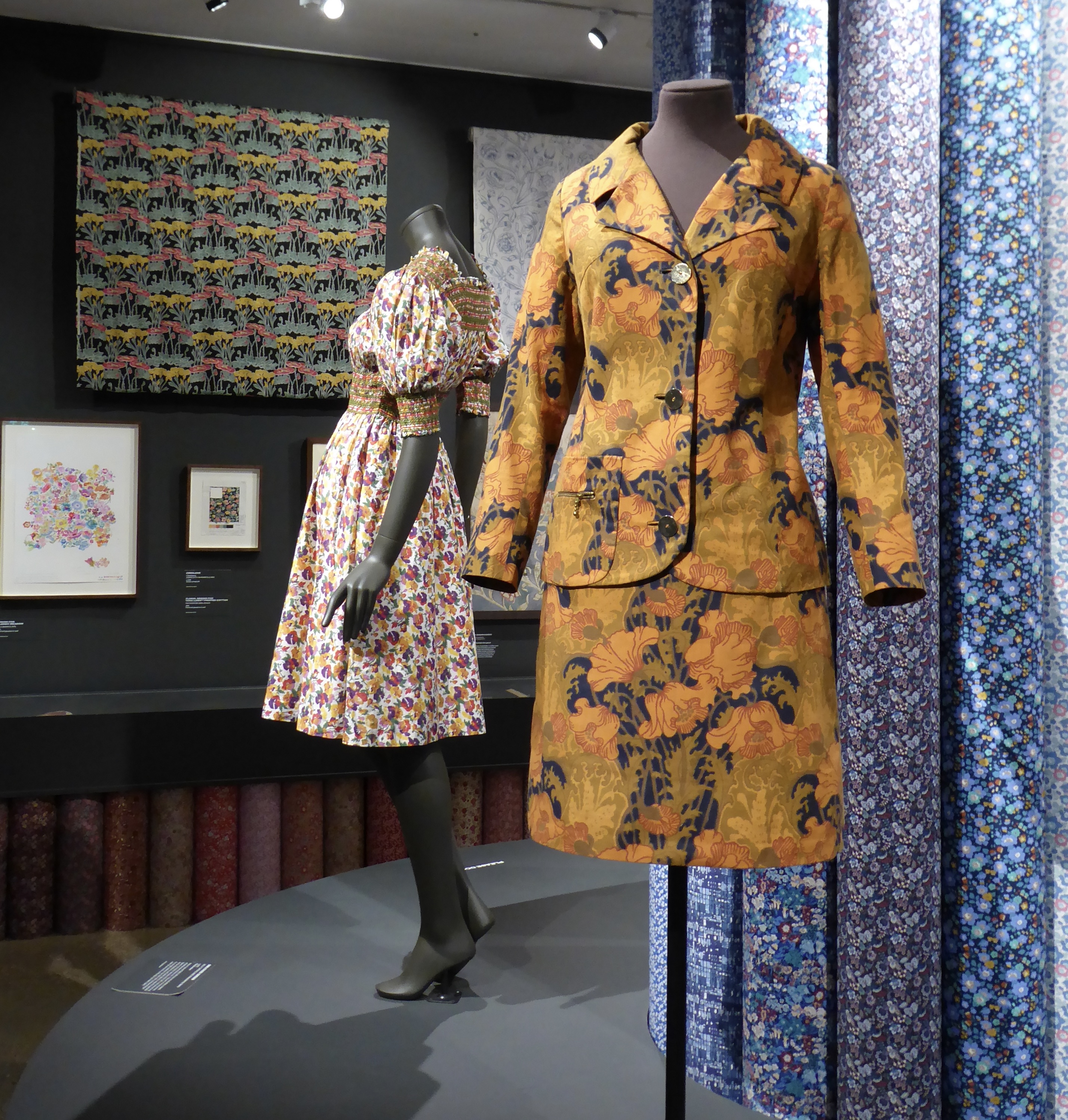 Arthur Liberty founded the shop in 1875, initially importing textiles and objets d’art from Asia and the Middle East. It soon moved into designing its own fabrics and helped to popularise the new Arts and Crafts and art nouveau styles. The fabrics were all printed until 1972 at the Merton Abbey Mills, and there was some fascinating film of the designs being block- or screen-printed and then rinsed in the chalk stream by men in their shirt sleeves who had been doing that work for decades. Then came the finished garment – which no doubt cost an arm and a leg to buy. A fascinating bit of social and economic history: design opportunities for talented women (initially anonymous), manufacturing work for local companies, then the sale of the finished goods to the prosperous to adorn their homes and persons – much of that exchange also transacted between women, albeit across a social divide.