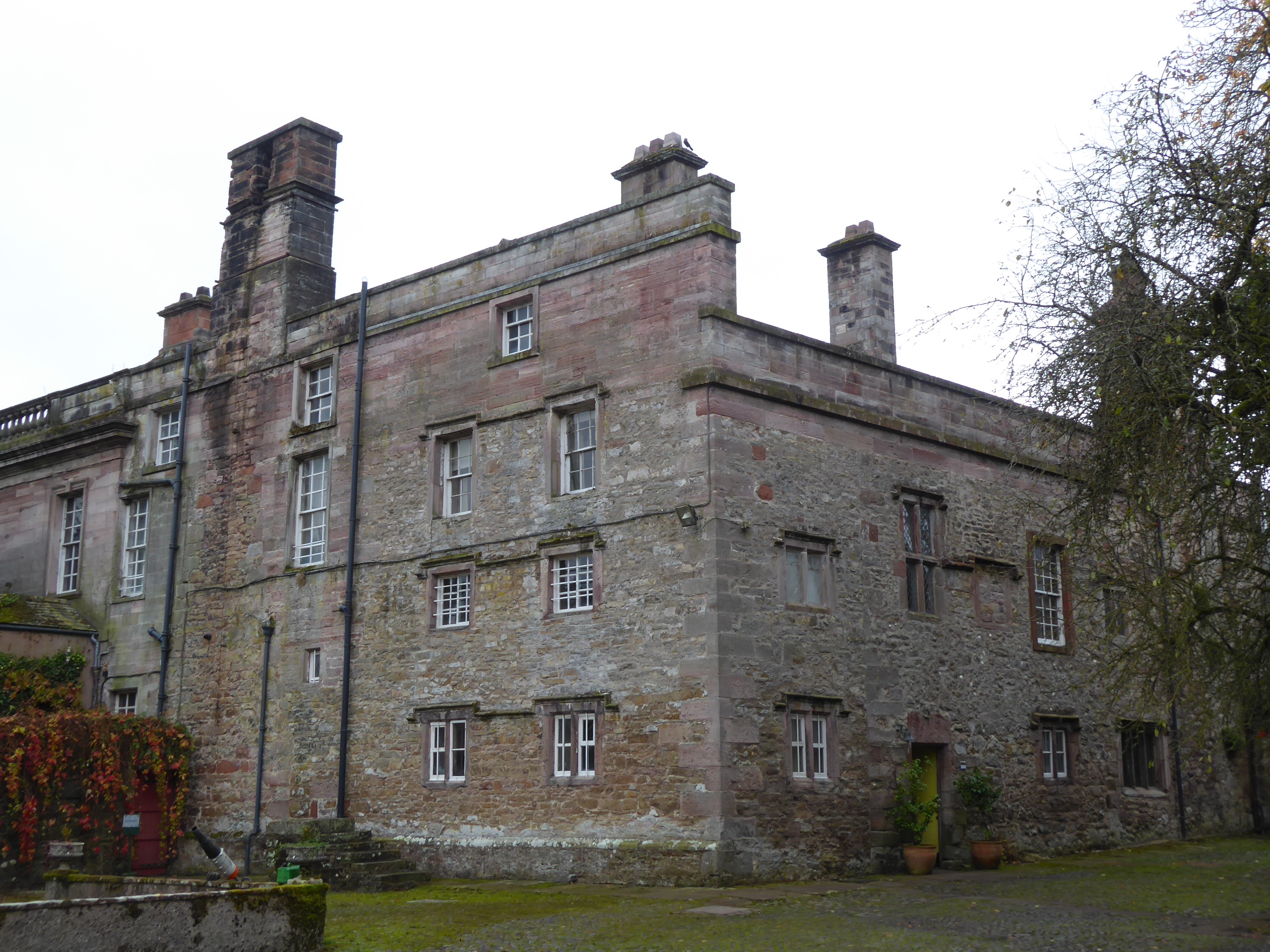I caught the bus to Rheged (and, as I got off four minutes later, wondered why I’d bothered) and walked to Dalemain House. A pele tower and Georgian house in one, so it was interesting to pass from one era to another on the guided tour of the house. (But, my goodness, it was cold inside!) We moved backwards in time, from Chinese rooms and symmetry to a Tudor plasterwork ceiling, and finally the hall with an enormous fireplace. The last buyer of the house was Edward Hasell in 1679; he was a former steward to the ubiquitous Lady Anne Clifford.